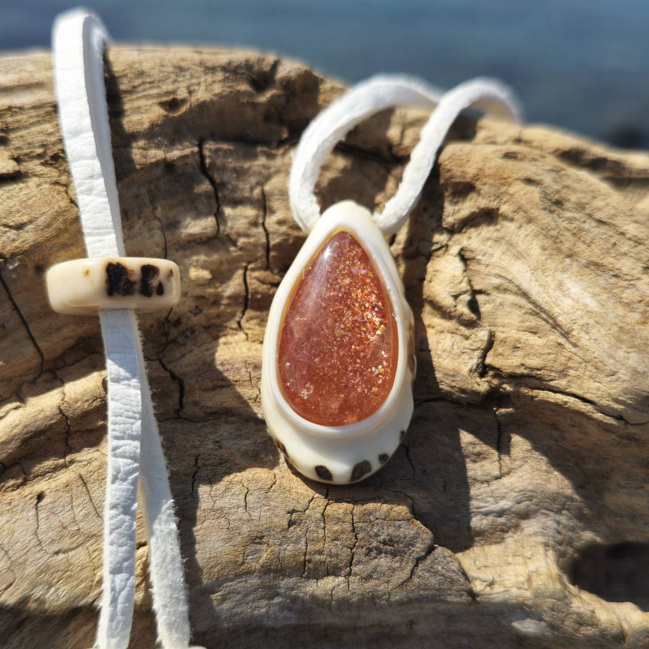 こちらは【鹿の角 サンストーンのペンダント】になります。