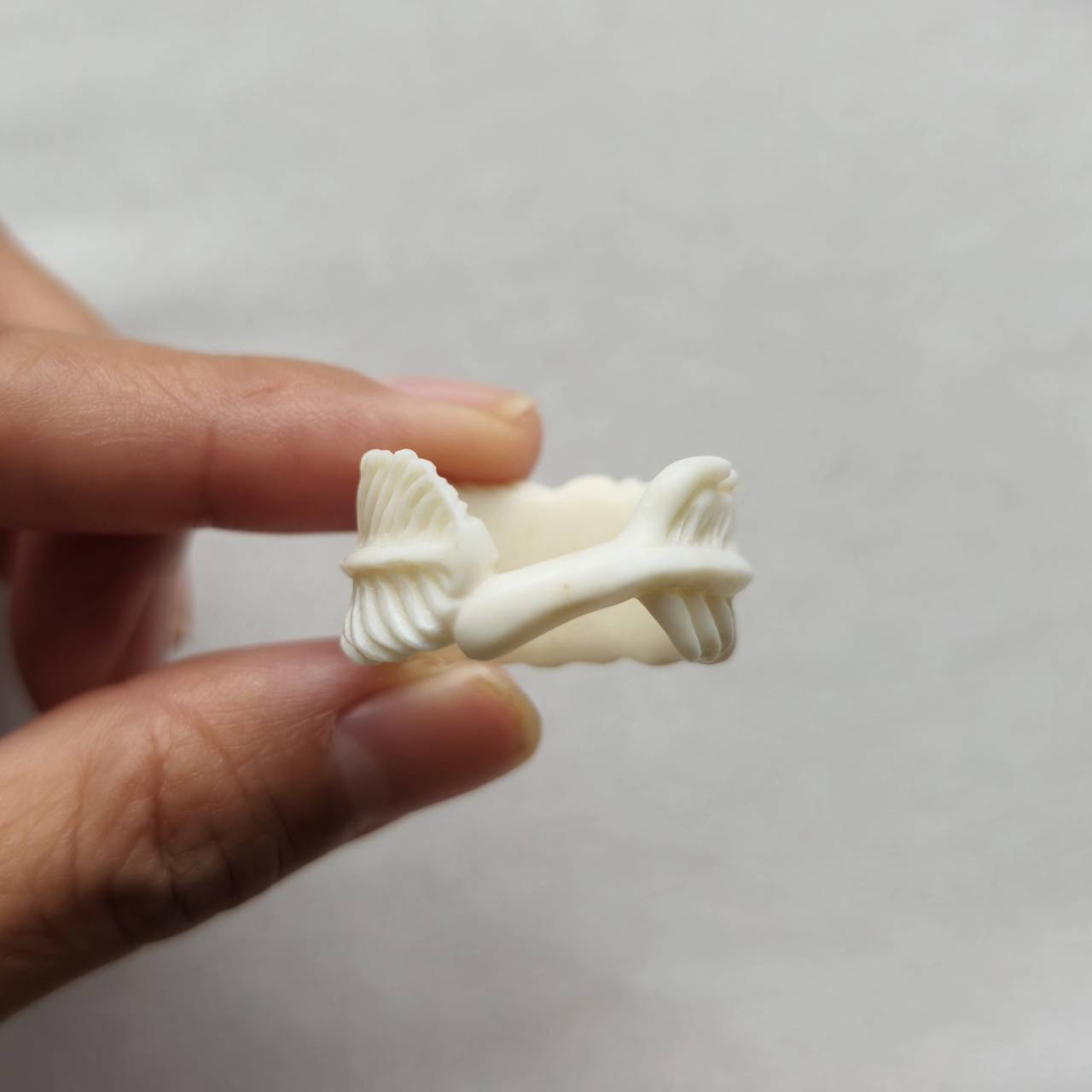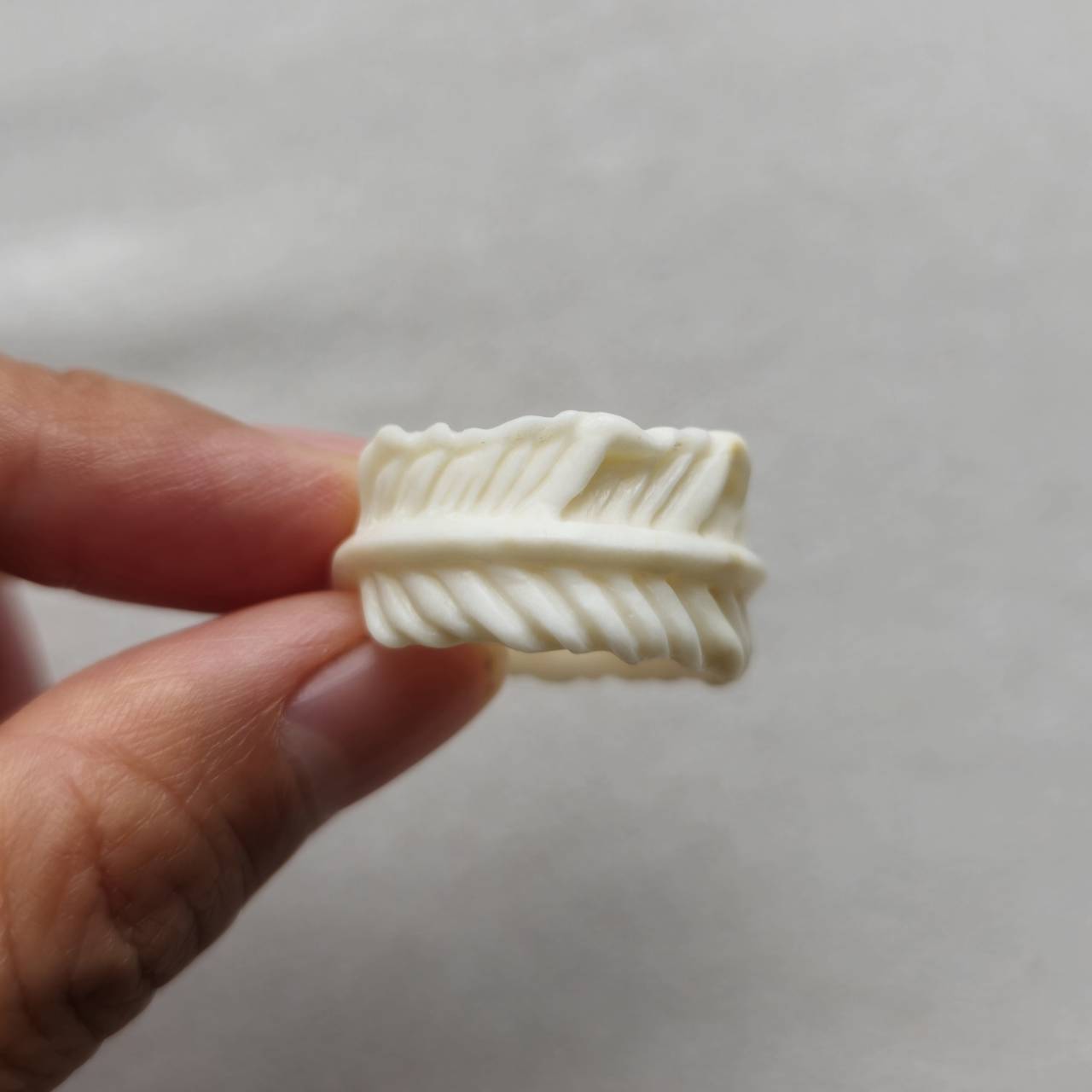 ネイティブアメリカンのフェザーをモチーフに鹿の角で羽を彫りました。
