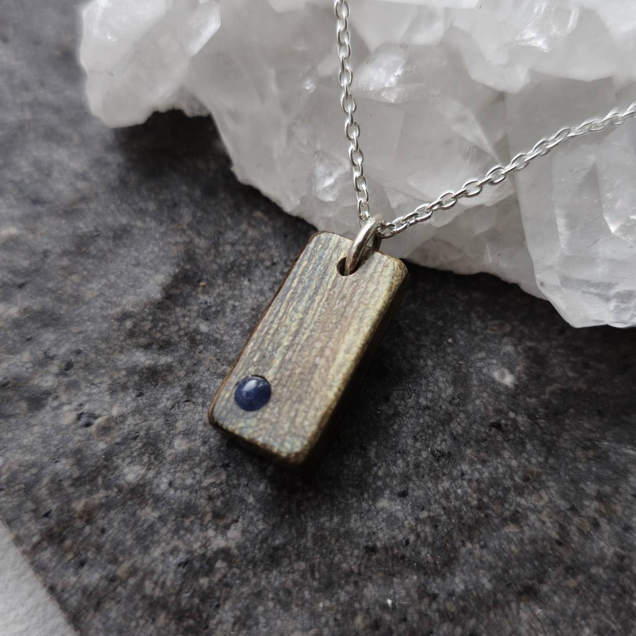 プレートタイプの土台に一粒ブルーサファイアを埋め込んでいます。