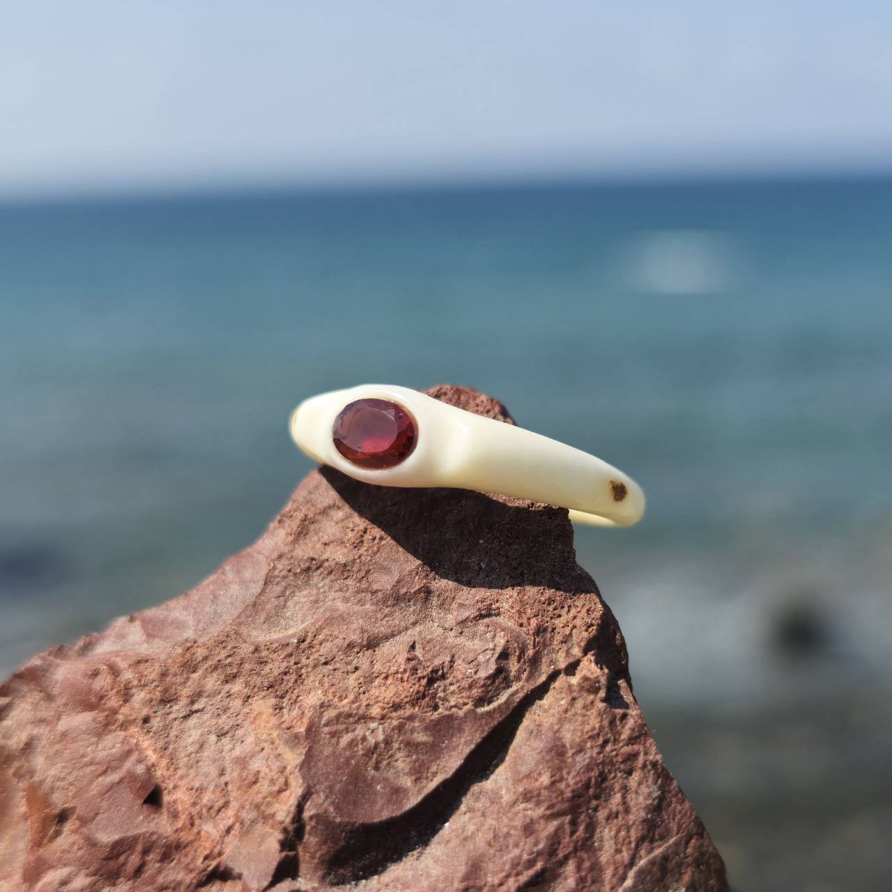 こちらは【鹿の角 モザンビークガーネットのリング 約14.5号】になります。