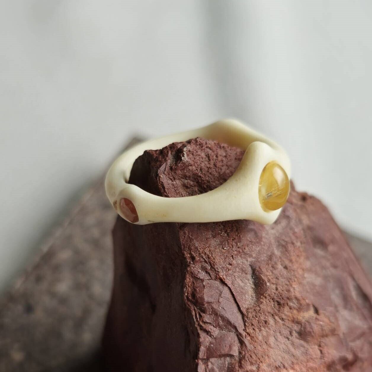 こちらは【鹿の角 トパーズとアンデシンのリング (約)12号~12.3号】になります。