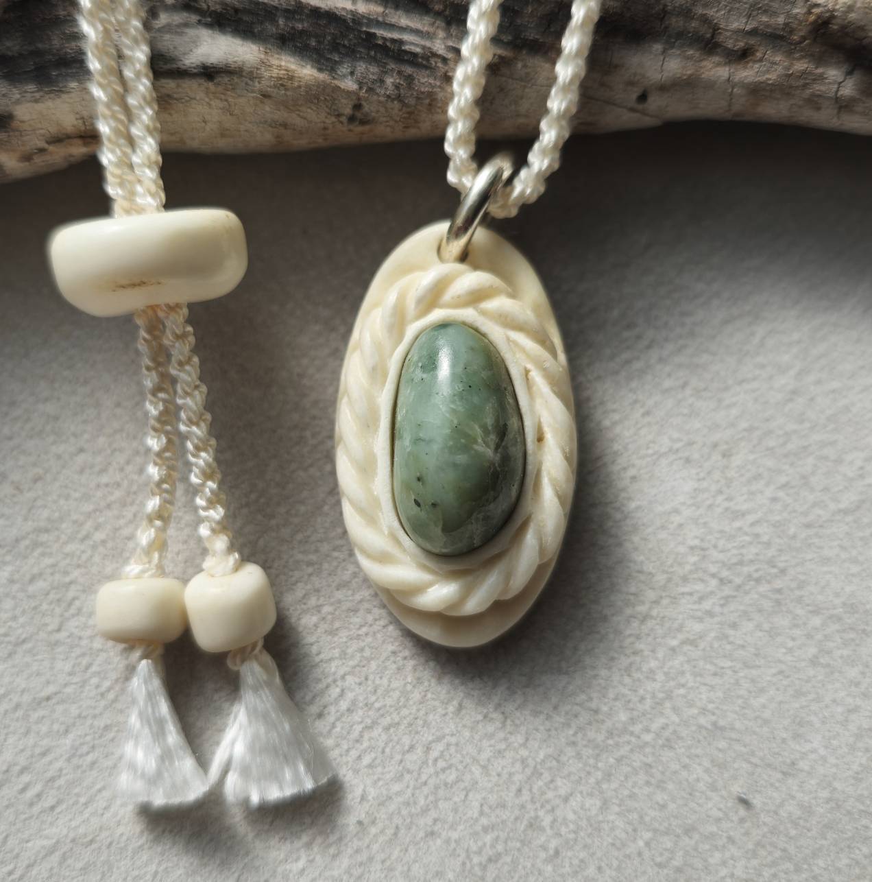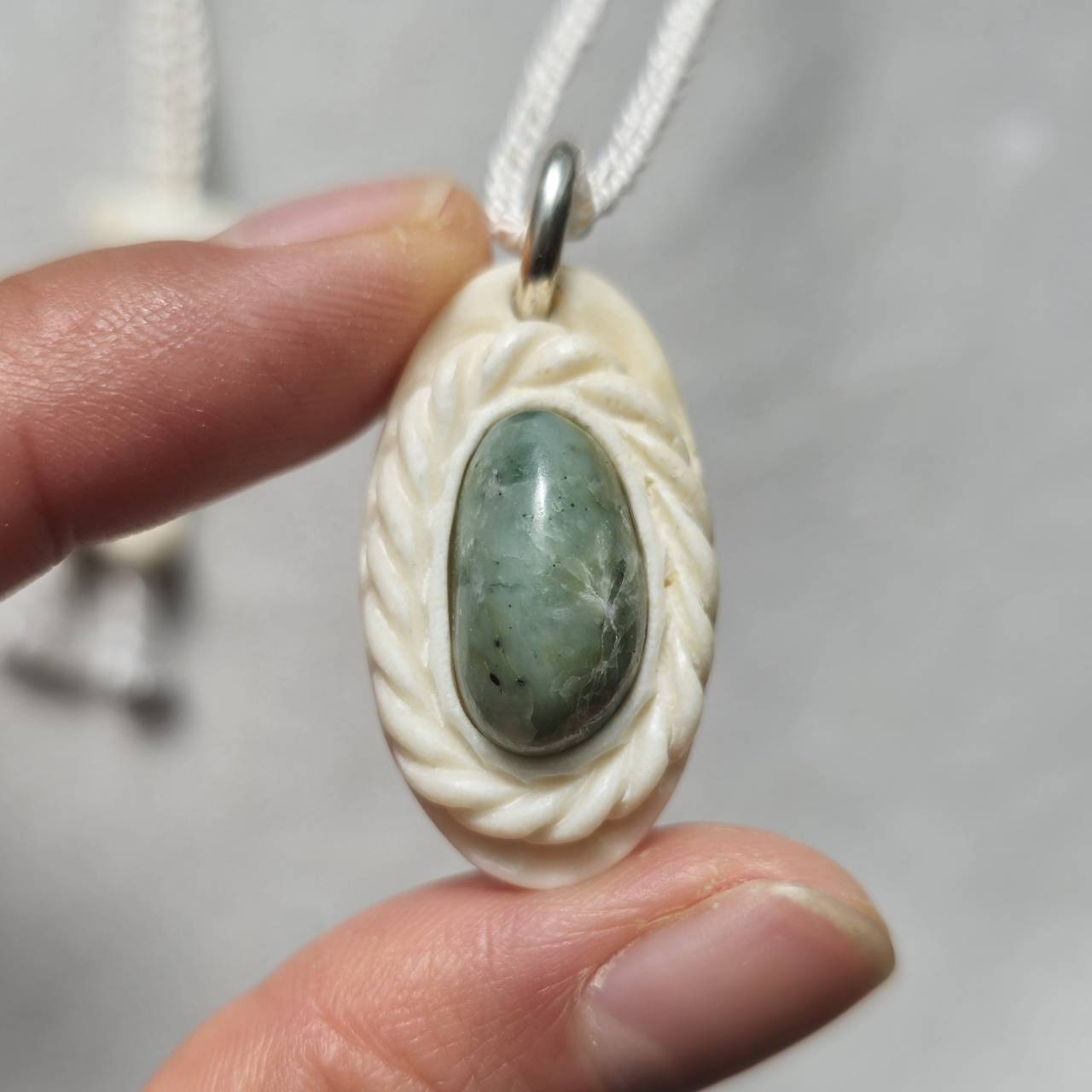 こちらは【鹿の角 日高翡翠のペンダント】になります。