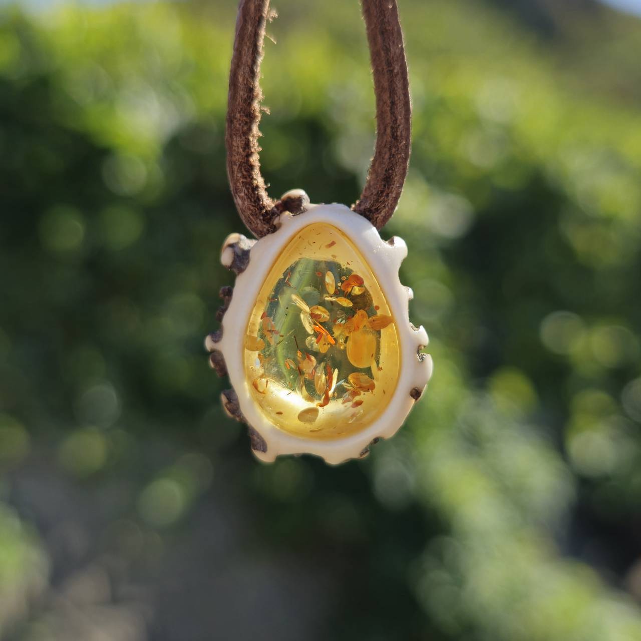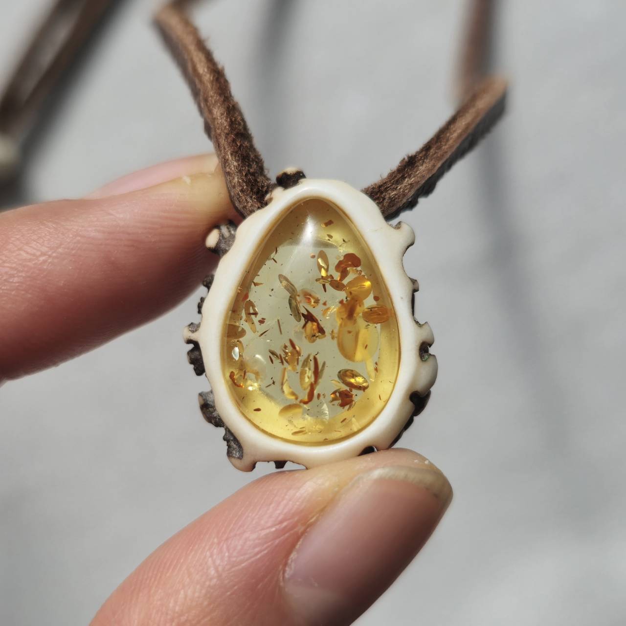 こちらは【鹿の角 ゴールデンアンバーのペンダント #2 】になります。