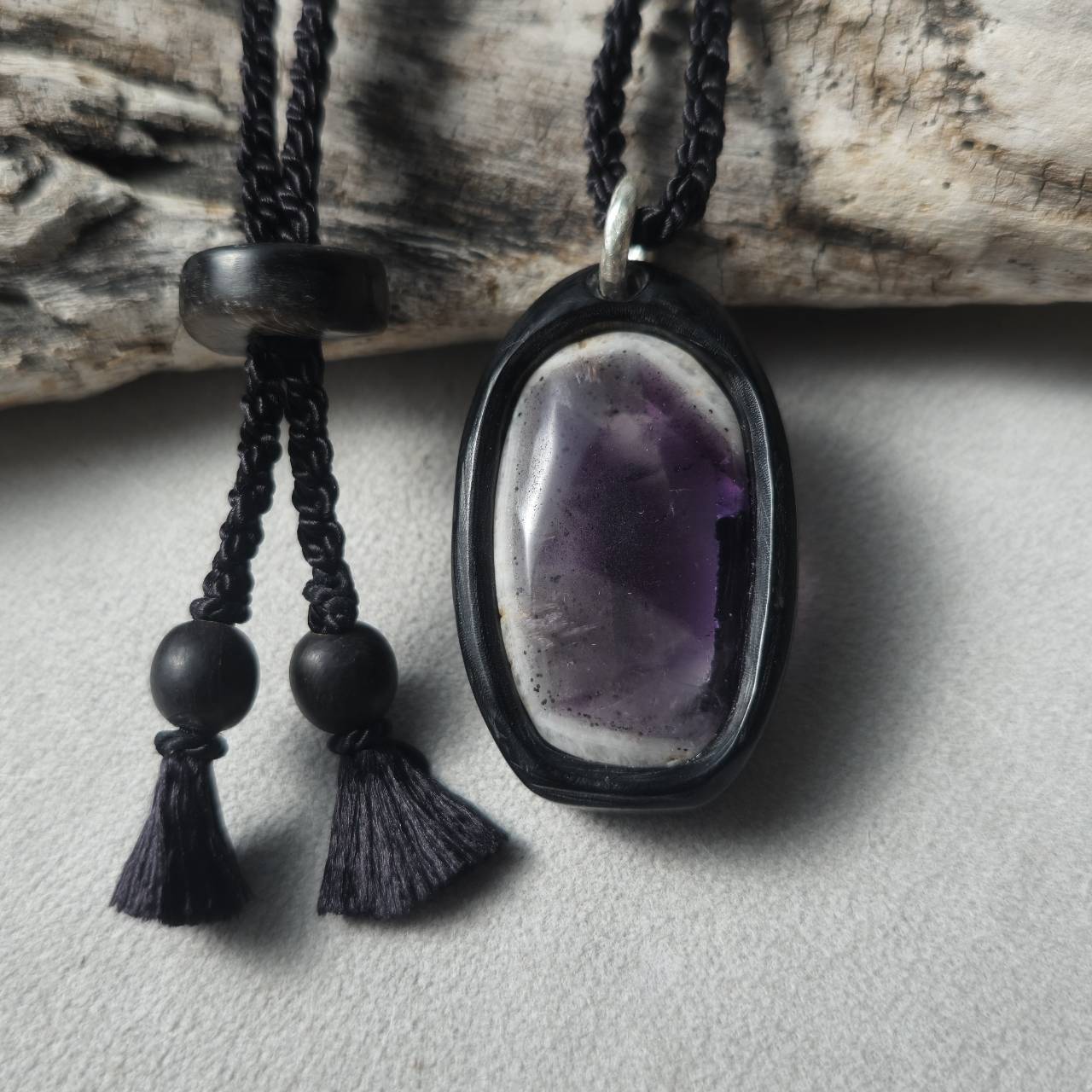 こちらは【水牛の角 トラピッチェアメジストのペンダント】になります。