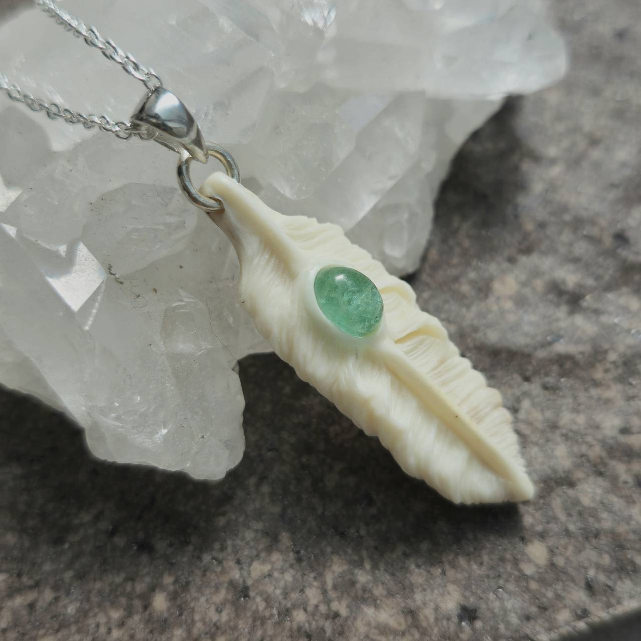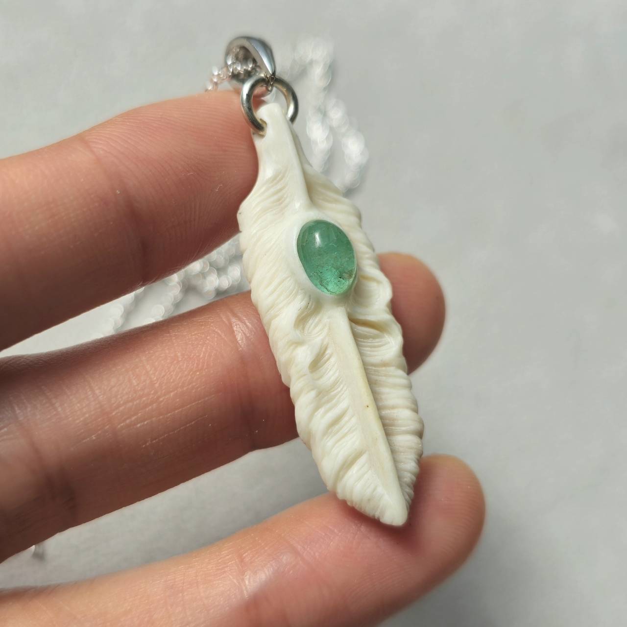 こちらは【鹿の角 エメラルドのフェザーネックレス】になります。