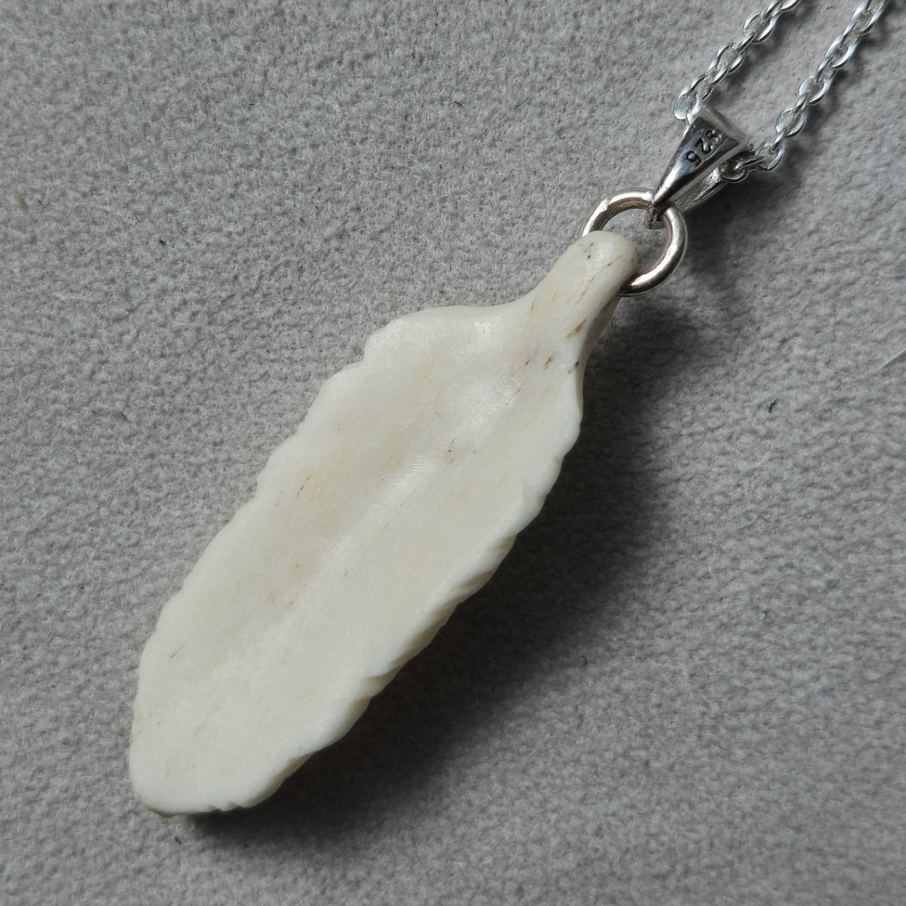 ネイティブアメリカンのフェザーをモチーフに鹿の角で羽を彫りました。