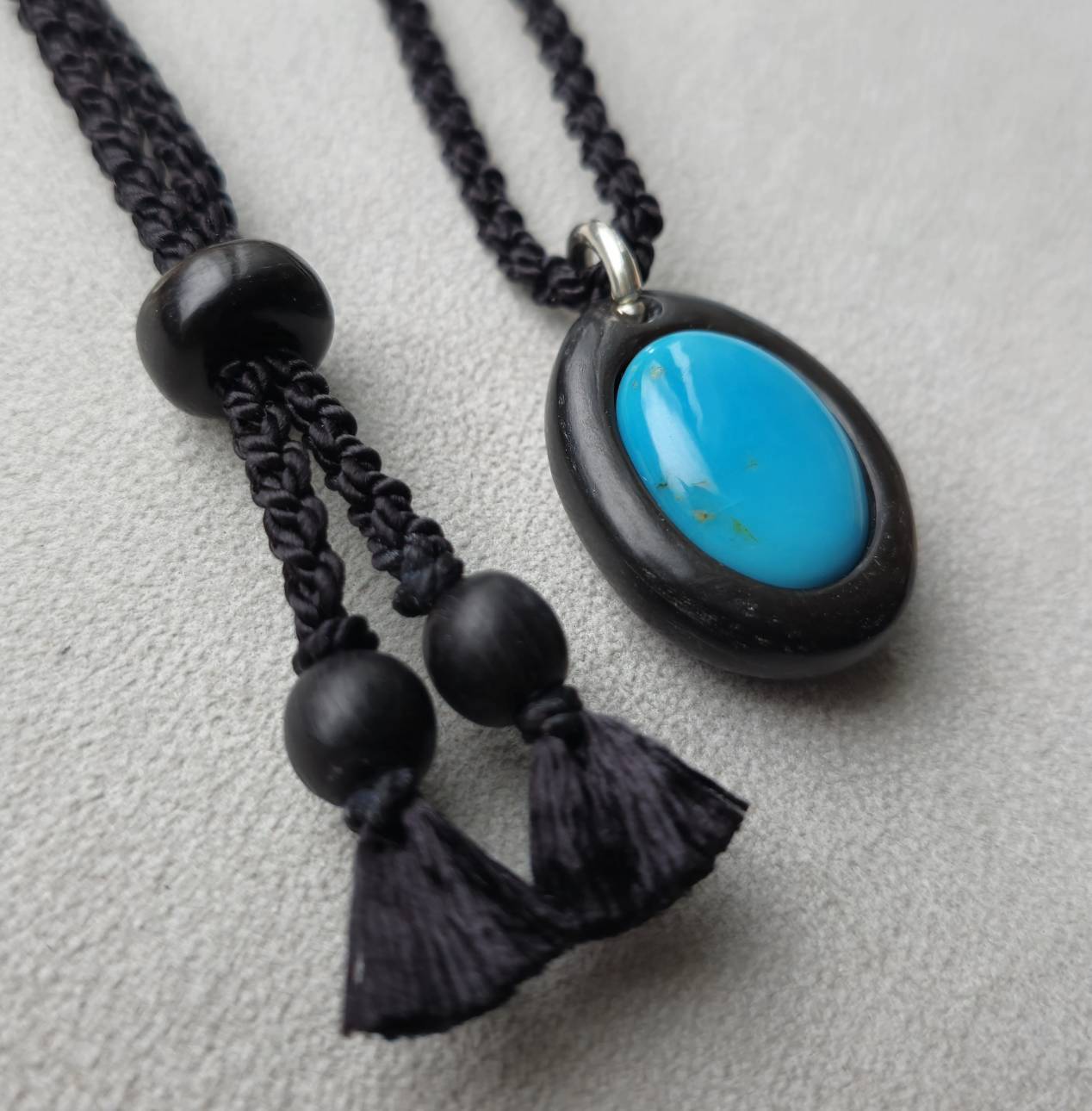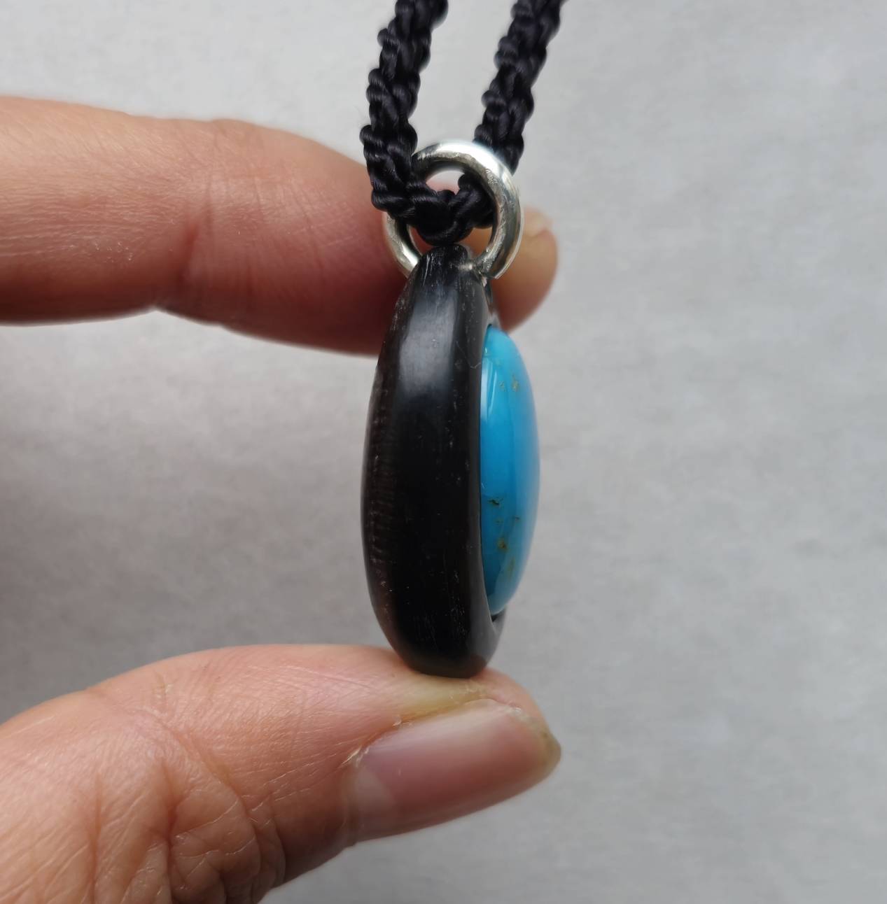 こちらは【水牛の角 スリーピングビューティーターコイズのペンダント】になります。