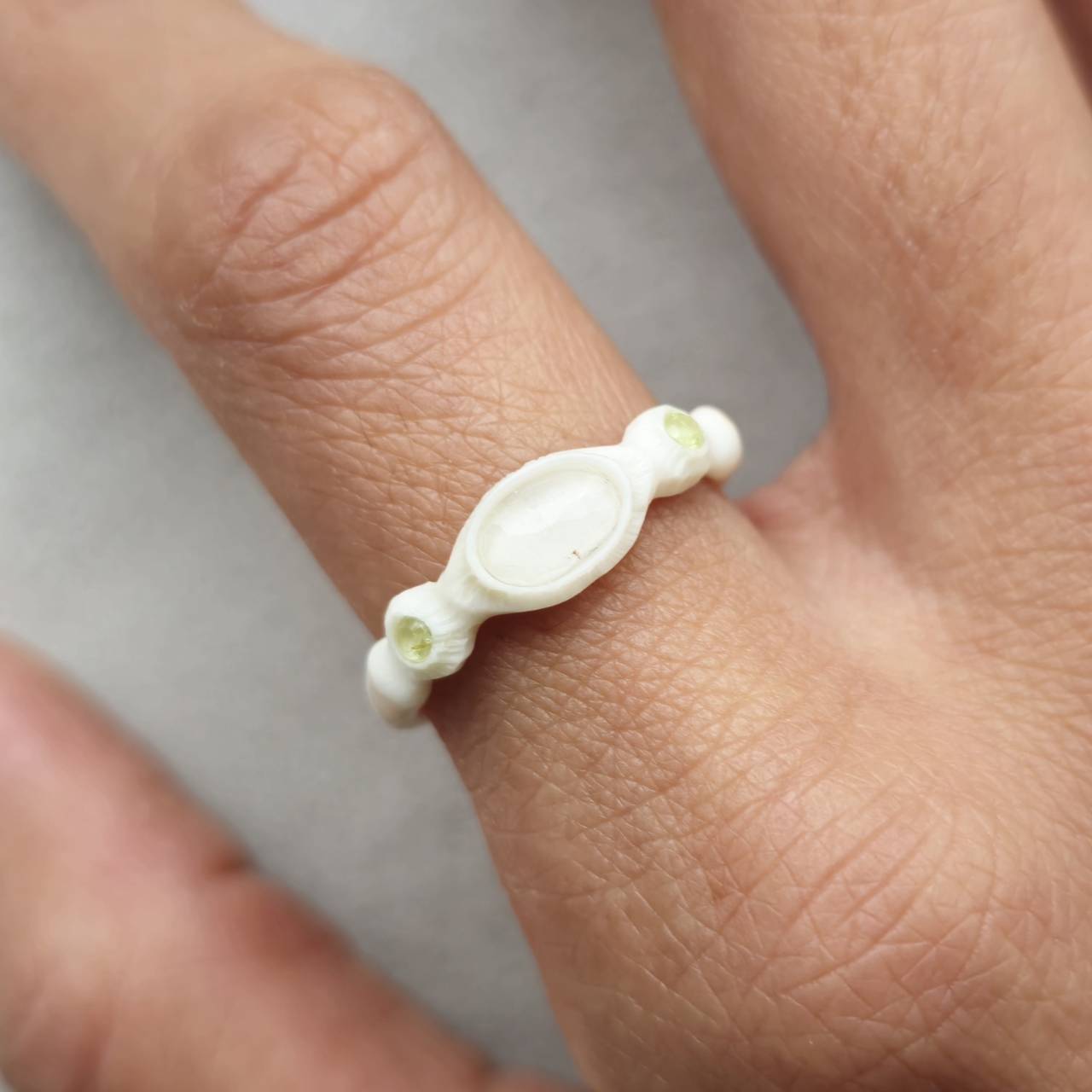 鹿の角 ハイアライトオパールとペリドットのリング 約13号