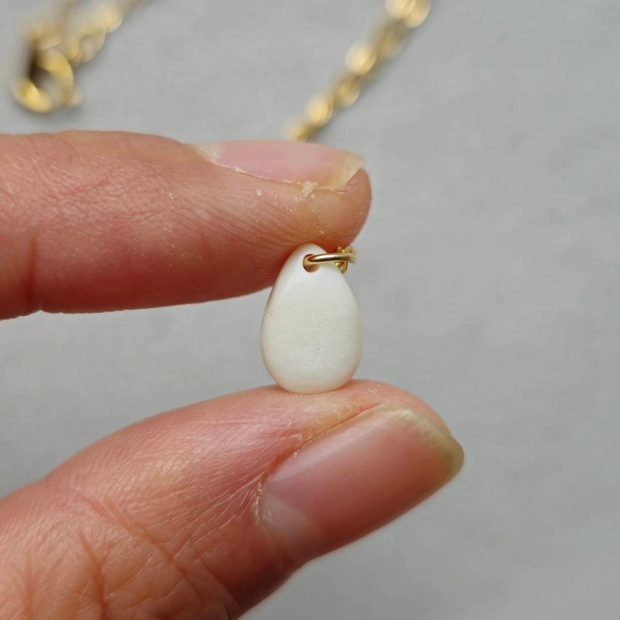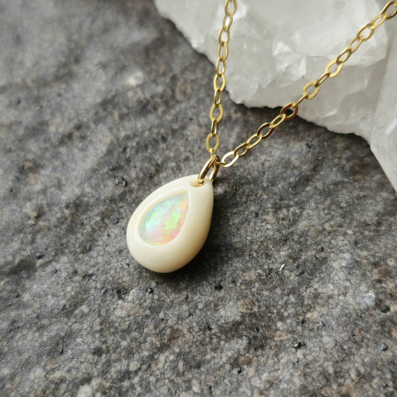 鹿の角の土台にホワイトオパールをセットした一点物のミニトップネックレスです。
