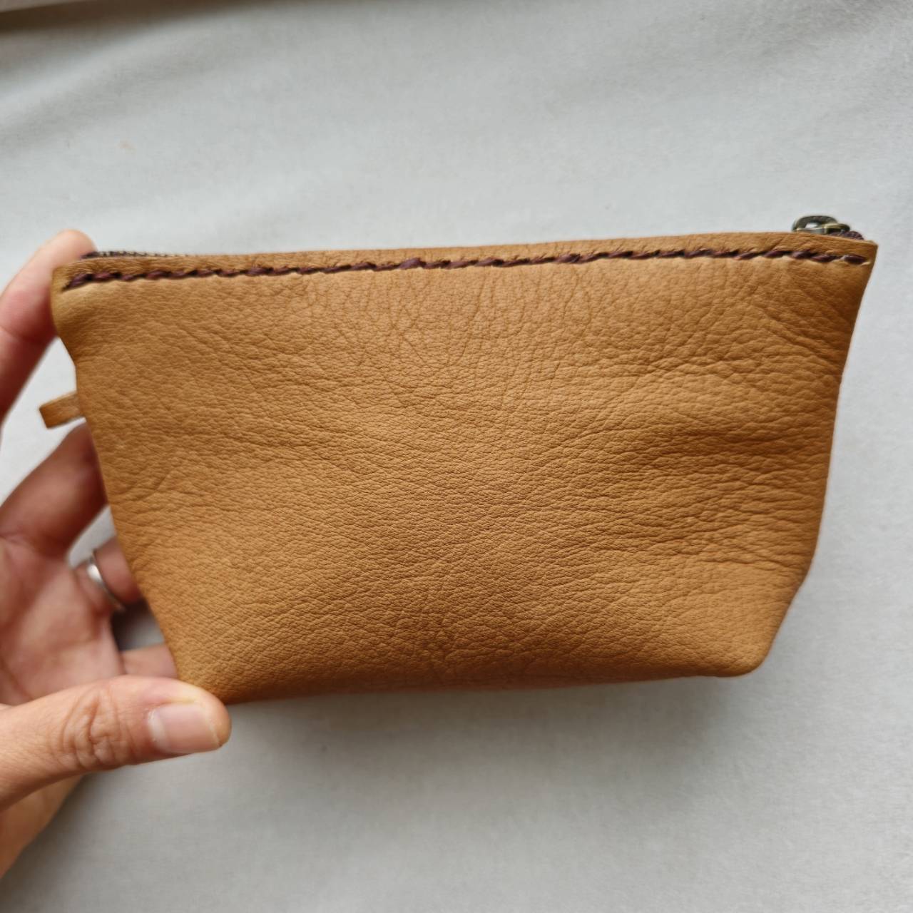 肌触りのいい鹿革を使用し、手縫いによるハンドメイドで自然の風合いを活かし制作したポーチです。
