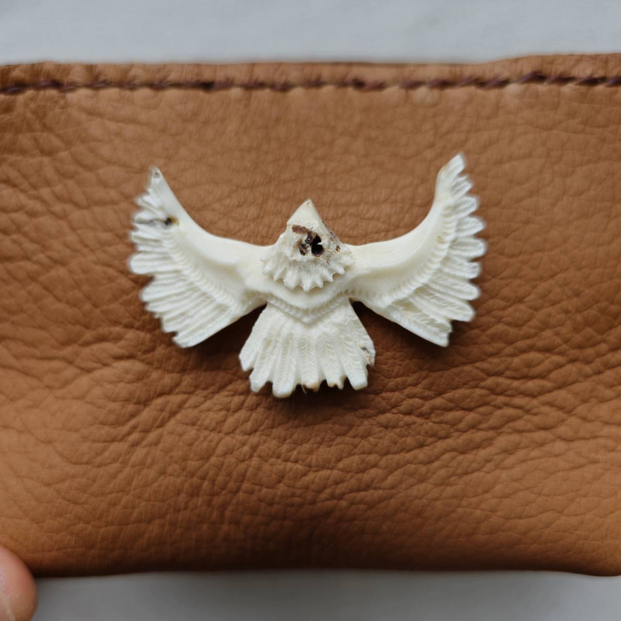 コンチョは鹿の角から削り出したイーグル。