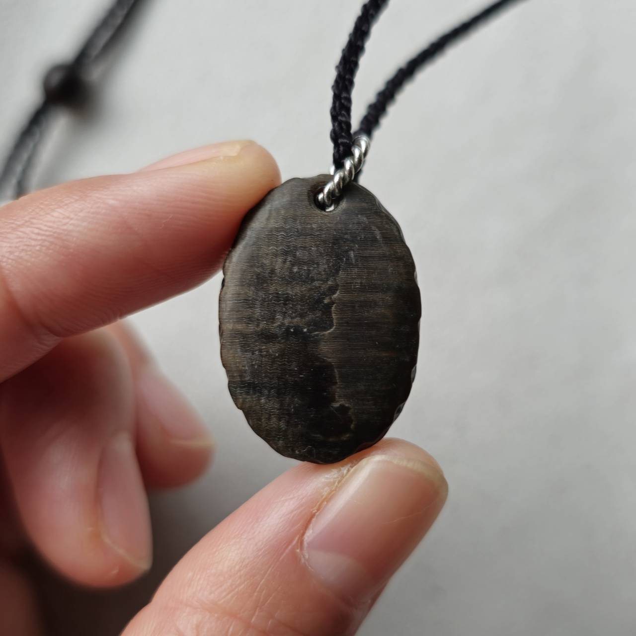 こちらは【水牛の角 黒翡翠のペンダント】になります。